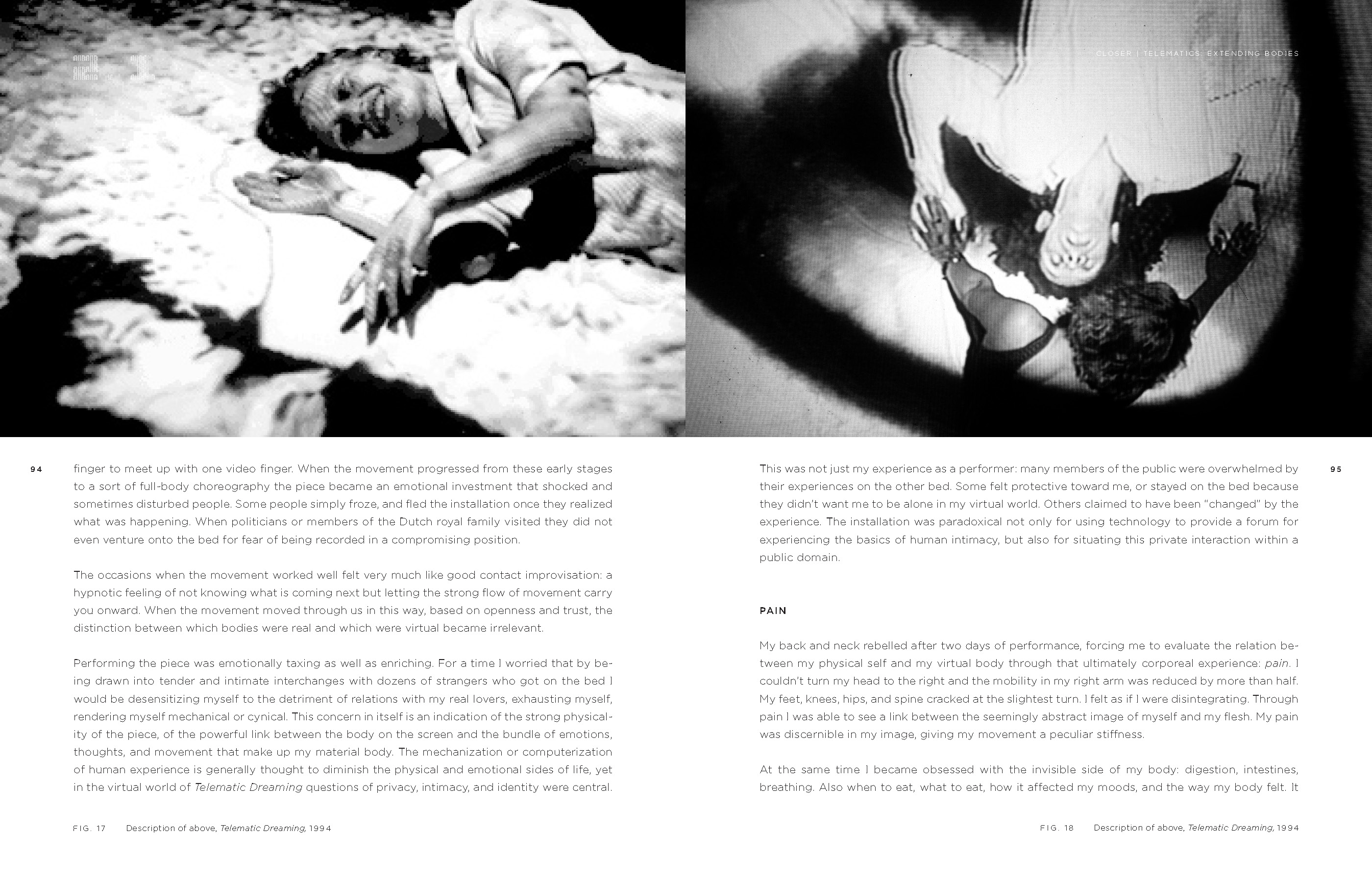 After outlining her approach and methodology and clarifying the key concepts of performance, technologies, and virtuality, Kozel applies phenomenological method to the experience of designing and performing in a range of computational systems: telematics, motion capture, responsive architectures, and wearable computing.