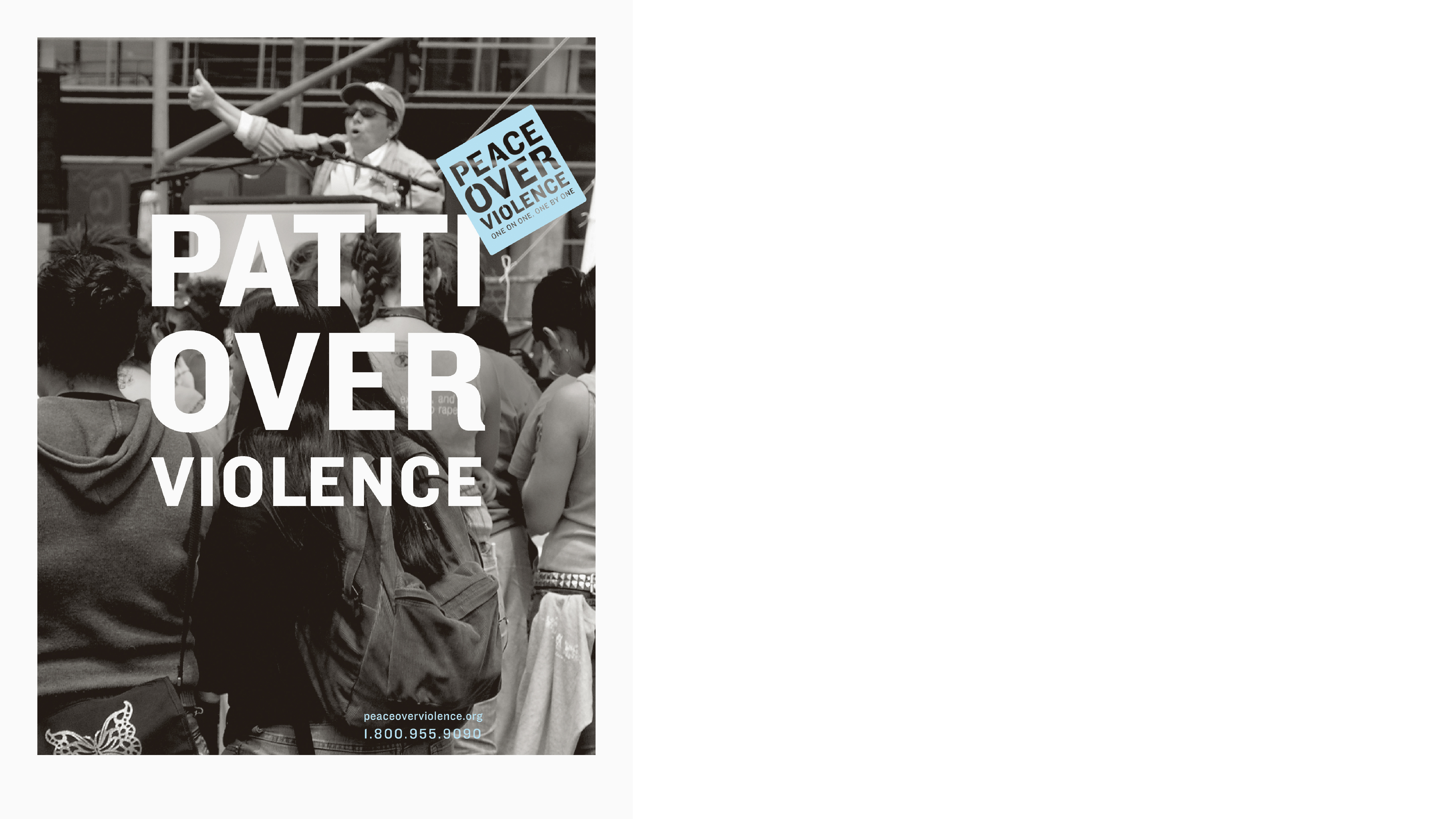 For six months we interviewed the different stakeholders of the agency, from staff to board members to volunteers. We studied the history of the movement and the pervasiveness of the problem. In the summer of 2005 we presented to the Board of Directors our positioning document and name proposal. We proposed ‘a name as an engine,’ a strategy where the name would function as a self- propelling force, a campaign in itself, and an all-inclusive call to action to rally people behind a larger social movement. The name is Peace Over Violence.