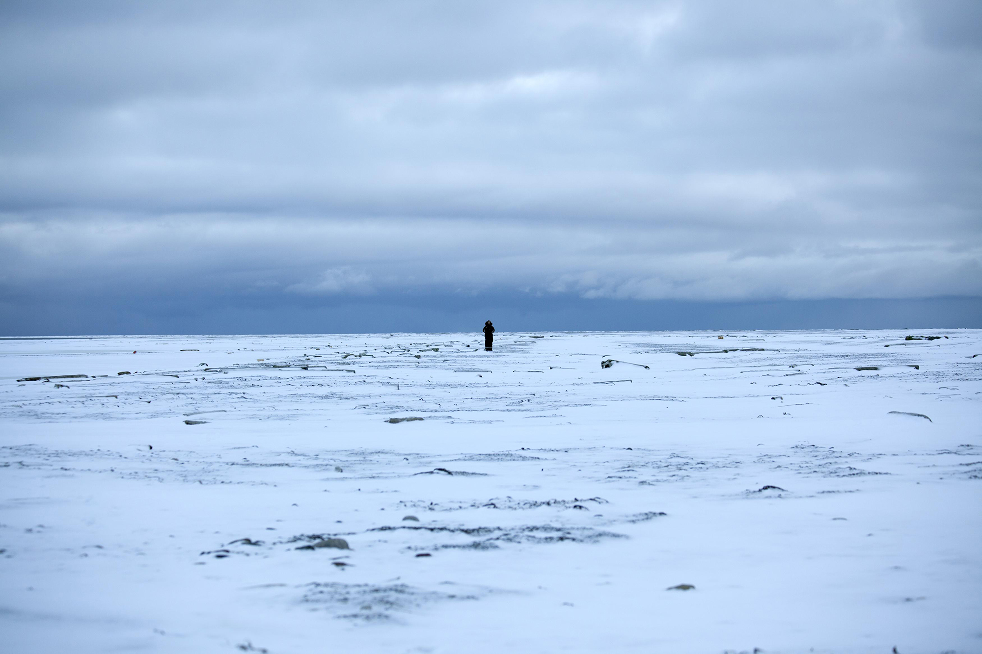 Recurrence Relation 2 is a single-channel video projection, where the tenuous image of a figure emerges from the distant horizon. The figure walks towards the viewer, even at times looks straight onto the viewer, then continues beyond the viewer. The landscape of the barren high arctic sits still as the figure emerges again, to repeat the same migrating pathway, endlessly. In mathematics, a recurrence relation is an equation that defines a sequence recursively: each term of the sequence is defined as a function of the preceding terms. Cycle after cycle, the figure, returns in silent determination, carrying with him/her the accumulated memory of the previous cycles. The figure is like Sisyphus on his way down the hill, momentarily without the weight of his stone. Filmed in Moffen Island, International Territory of Svalbard, an archipelago near the north pole (80°N, 14.5°E), 2010.