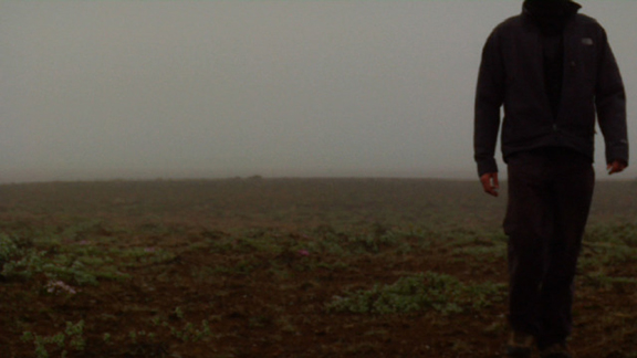 Recurrence Relation 1 is a video art installation, where the tenuous image of a male figure emerges from a dense fog. He walks towards the viewer, even at times looks straight onto the viewer, then continues beyond the viewer. The landscape of the barren tundra sits still as birds fly by or land. Seconds later, the figure emerges again, to repeat the same pathway, endlessly. In mathematics, a recurrence relation is an equation that defines a sequence recursively: each term of the sequence is defined as a function of the preceding terms. Cycle after cycle, the figure, returns in silent determination, carrying with him the accumulated memory of the previous cycles. He is like Sisyphus on his way down the hill, momentarily without the weight of his stone. Filmed in Iceland on July, 2008.