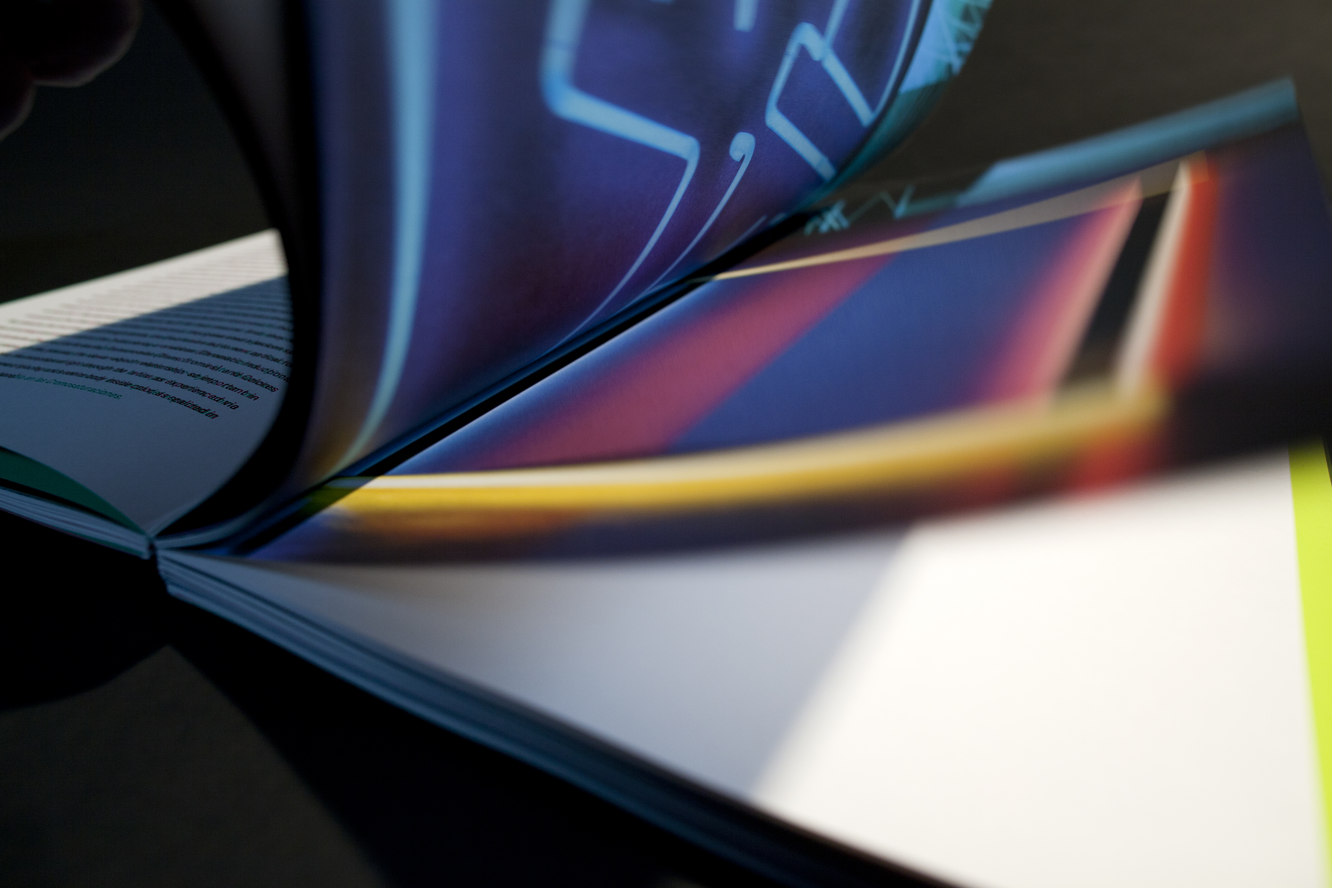 “Upon seeing the work, MOCA director Jeffrey Deitch said to exhibition curator Alma Ruiz, ‘This is a collectors’ item, keep a few samples around.’ Ruiz writes in her acknowledgements, ‘I am greatly indebted to the designer of this exquisite catalogue, Rebeca Méndez, and her team, Adam Eeuwens and Leigh Anne Abiouness, for their extraordinary insight, creative focus and sensitivity to the subject matter.’ In a text message, Alma wrote: ‘The more I handle the book, the more I like it. It’s a beauti- ful and challenging object.’ Rebeca Méndez’s response to her text is why we consider it a success: ‘Thank you for your text...I also like the book more and more every day. The yellow keeps surprising me, as it changes completely from day to night and under different light conditions. So do the gels inside. It’s definitely an object that goes beyond expectations of an exhibition catalogue, and demands a different—more interactive and playful—relationship. At the same time, its typographic design is quite simple, therefore one always has a familiar point of entry. The book is not just a documentation of the exhibition but also an extension of ‘Supra- sensorial’ and an experiment on light, color and space.’”